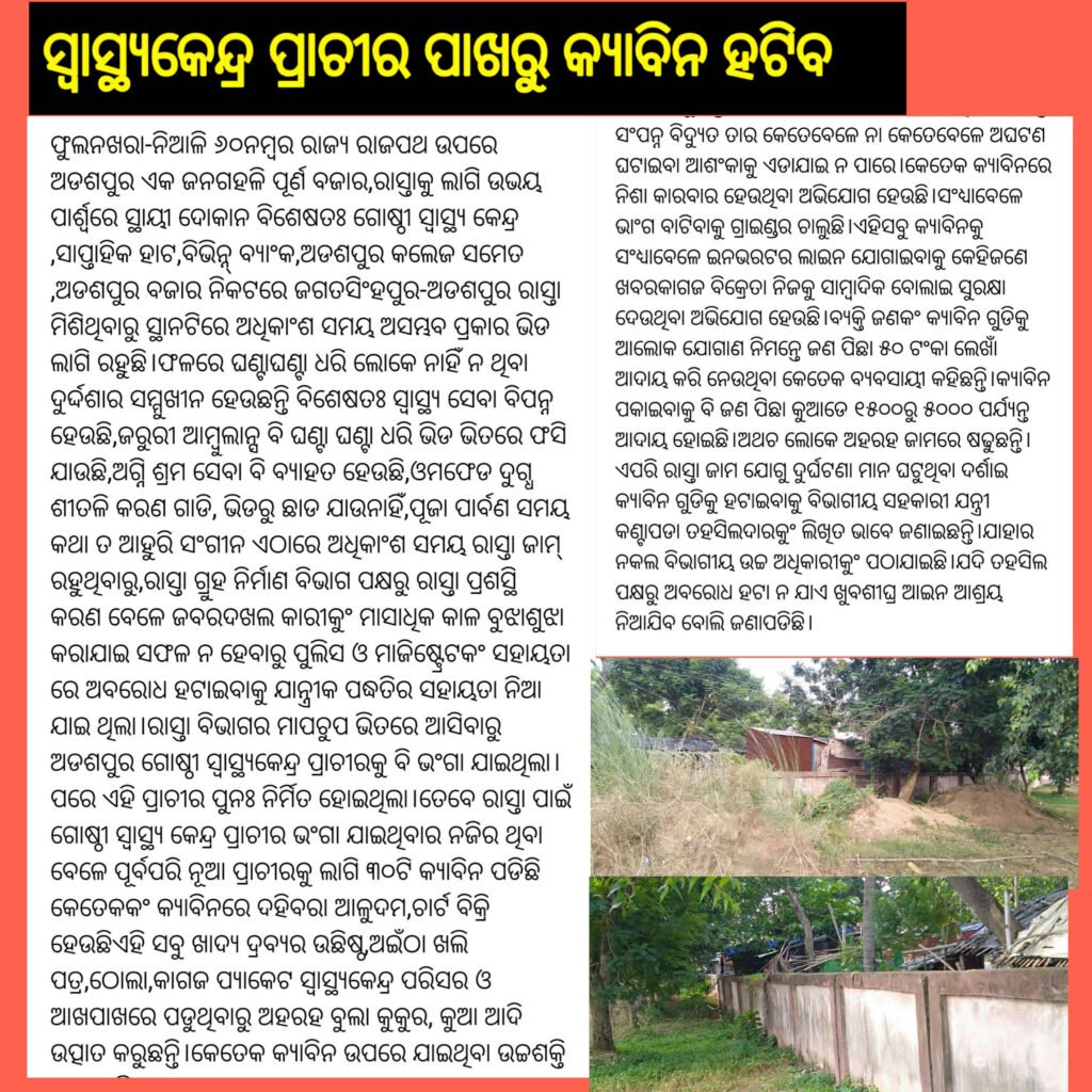 ଅଂଚଳ ଖବର ଆଂଚଳିକ:ପାନୀୟ ଜଳପ୍ରକଳ୍ପ ଅଧାରେ ଅଟକିଛି,ଦାଦା ବଟିରେ କ୍ୟାବିନ!ରାଜପଥ ସଂପ୍ରସାରଣ ଖର୍ଚ୍ଚ ଅଯଥା ହେଲା,ଟ୍ରାଫିକ ସମସ୍ୟାରେ ଜନତା August 7, 2020August 7, 2020satyanusandhanaLeave a Comment on ଆଂଚଳିକ:ପାନୀୟ ଜଳପ୍ରକଳ୍ପ ଅଧାରେ ଅଟକିଛି,ଦାଦା ବଟିରେ କ୍ୟାବିନ!ରାଜପଥ ସଂପ୍ରସାରଣ ଖର୍ଚ୍ଚ ଅଯଥା ହେଲା,ଟ୍ରାଫିକ ସମସ୍ୟାରେ ଜନତା Spread the love