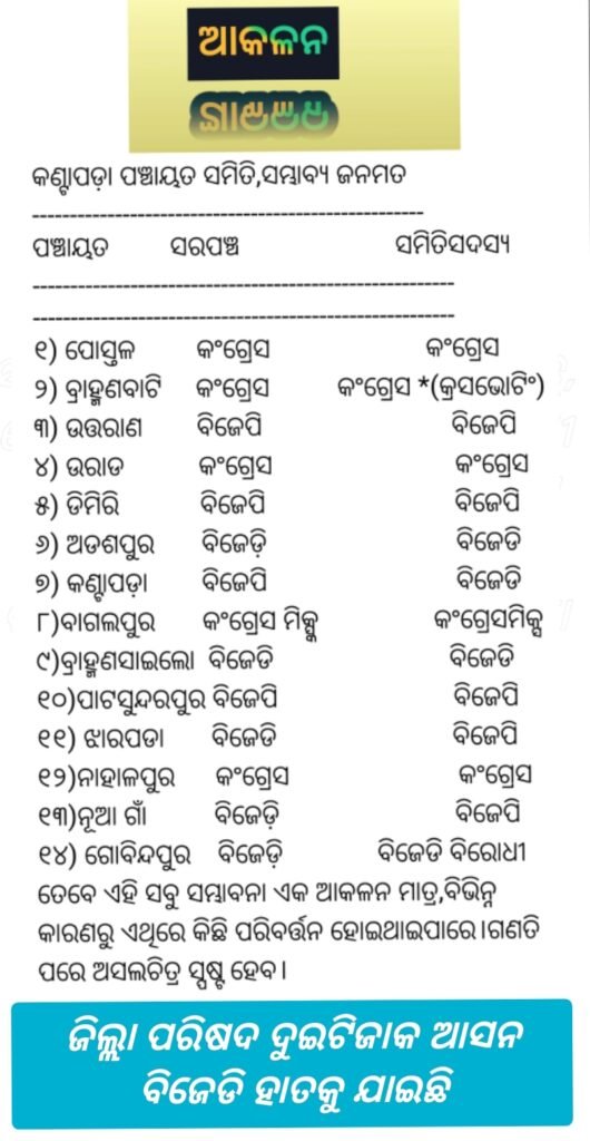 କଣ୍ଟାପଡ଼ା ପଞ୍ଚାୟତ ସମିତି ଓ ସରପଞ୍ଚ ଫଳାଫଳ କେଉଁ ଦଳ ସପକ୍ଷରେ??