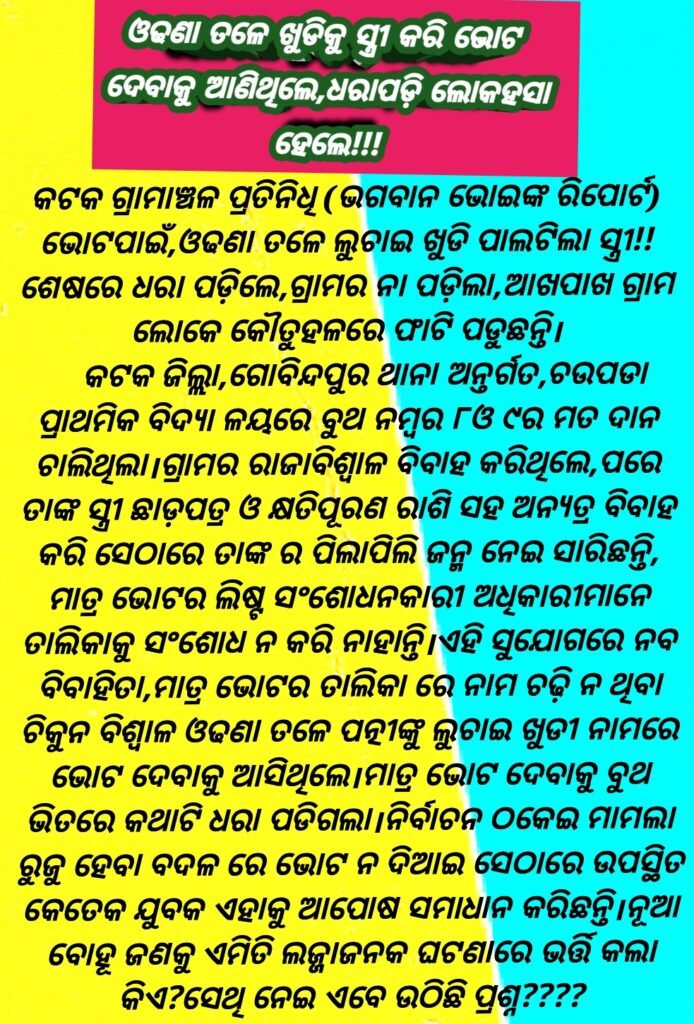 ବିପଦରେ ଏବେ ପଞ୍ଚାୟତ ନିର୍ବାଚନର ଜନମତ ସଂଗୃହିତ ଭୋଟ ବାକ୍ସ ଗୁଡ଼ିକ।ଏଥିଲାଗି ଶାସକ ବିଜେଡି ଦଳ ସୁଚିନ୍ତି ତ ଯୋଜନା ପ୍ରସ୍ତୁତ କରିସାରିଥିଲା।ଯାହାକୁ ବିରୋଧି ଦଳ ଗୁଡ଼ିକ ସେଭଳି ଗୁରୁତ୍ଵ ଦେଲେ ନାହିଁ।ପୂର୍ବରୁ ୧୯୬୪ ମସିହା ଗ୍ରାମପଞ୍ଚାୟତ ଆଇନର ଚଳି ଆସୁଥିବା ବ୍ୟବସ୍ଥା ଅନୁଯା ୟୀ,ଭୋଟ ସରିବା ପରେ ବିଭିନ୍ନ ପ୍ରାର୍ଥୀଙ୍କ ଉପସ୍ଥିତ ଏଜେଣ୍ଟ ମାନଙ୍କ ଉପସ୍ଥିତିରେ କେଉଁ କେଉଁ ପ୍ରାର୍ଥୀଙ୍କୁ କେତେ ଭୋଟ ମିଳିଛି?ମୋଟ ଭୋଟ ସଂଖ୍ୟା କେତେ?ତାହାର ହିସାବ ଅଣ ଆନୁଷ୍ଠାନିକ ଭାବେ ଦେଇ ଭୋଟବାକ୍ସ ଜଉମୁଦ କରା ଯାଏ।ଏହି ବାକ୍ସ ଗୁଡ଼ିକୁ ବ୍ଲକ କାର୍ଯ୍ୟାଳୟରେ ଚୁଡାନ୍ତ ଗଣତି ଯାଏ ସାଇତି ରଖି ଗଣତିପରେ ଫଳ ଘୋଷଣା ପରେ ୧୫ ଧାରାରେ ବିଜ୍ଞପ୍ତି ଜାରି କରାଯାଇ ନିର୍ବାଚନକୁ ସିଦ୍ଧ କରା ଯାଏ।ଏହା ସତ୍ତ୍ବେ କେତେକ ଅସାଧୁ ସରକାରୀ ଅଧିକାରୀ ଏଥିରେ ହେର ଫେର କରି ବେଳେବେଳେ ଧରାପଡ଼ି ହିନସ୍ଥା ଓ ଲୋକହସା ହୋଇଥାଆନ୍ତି।ଗତ ନିର୍ବାଚନରେ ଏହି ବ୍ୟବ ସ୍ଥା ଥାଇ ମଧ୍ୟ କଟକ ଜିଲ୍ଲା,କଣ୍ଟାପଡ଼ା ବ୍ଲକ,ସାଇଲୋ ଝାର ପଡ଼ା ପଞ୍ଚାୟତରେ ବାମଦେବ ପାତ୍ର ୨୬ଖଣ୍ଡ ଭୋଟରେ ଜିତିଥିବାବୁଥ ଗୁଡ଼ିକର ଗଣତି ପରେ ଜଉ ମୁଦା ହେଲା।ବାକ୍ସ ବ୍ଲକ କାର୍ଯ୍ୟାଳୟ ଷ୍ଟ୍ରଙ୍ଗରୁମରେ କଡ଼ା ସୁରକ୍ଷାରେ ରହିଲା।ଗଣତି ଦିନ ବିଡ଼ିଓ ଆଖି ଠାରି ଦେଲେ ଜଣେ ବ୍ୟକ୍ତି ୩୦ଟି ଭୋଟକୁ ଆଖି ଆଗରେ ପାଟିରେ ଚୋବେଇ ଗିଳି ଦେଲା।