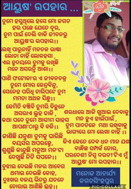 ରାଜ୍ୟଖବର (କବିତା):’ଆୟୁଷ ଉପହାର’-କବି ମନୋଜଆଚାର୍ଯ୍ୟ March 22, 2020March 22, 2020satyanusandhanaLeave a Comment on (କବିତା):’ଆୟୁଷ ଉପହାର’-କବି ମନୋଜଆଚାର୍ଯ୍ୟ Spread the love