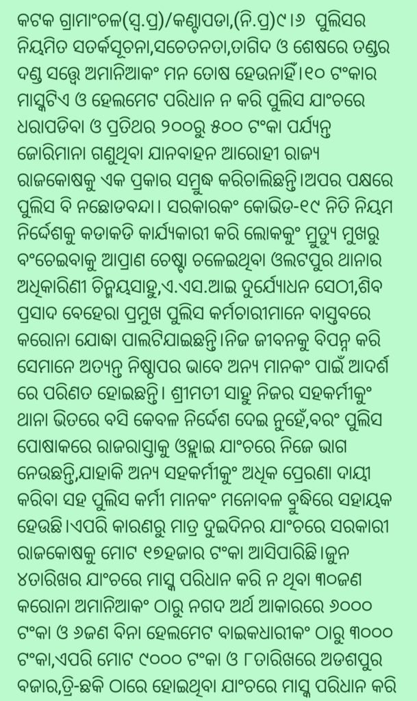 breaking News ଦୁର୍ଘଟଣା ରାଜ୍ୟଖବର କେନ୍ଦୁଝର ଓ କଟକ ଜିଲ୍ଲା: ଓକିଲ-ପୁଲିସ ମୁହାଁ-ମୁହିଁ, ମାସ୍କ ଧରପଗଡ ୧୭ହଜାର ଟଂକା ଜୋରିମାନା ଆଦାୟ ସର୍ପ ଦଂଶନରେ ୧ମ୍ରୁତ June 9, 2020June 9, 2020satyanusandhanaLeave a Comment on କେନ୍ଦୁଝର ଓ କଟକ ଜିଲ୍ଲା: ଓକିଲ-ପୁଲିସ ମୁହାଁ-ମୁହିଁ, ମାସ୍କ ଧରପଗଡ ୧୭ହଜାର ଟଂକା ଜୋରିମାନା ଆଦାୟ ସର୍ପ ଦଂଶନରେ ୧ମ୍ରୁତ Spread the love