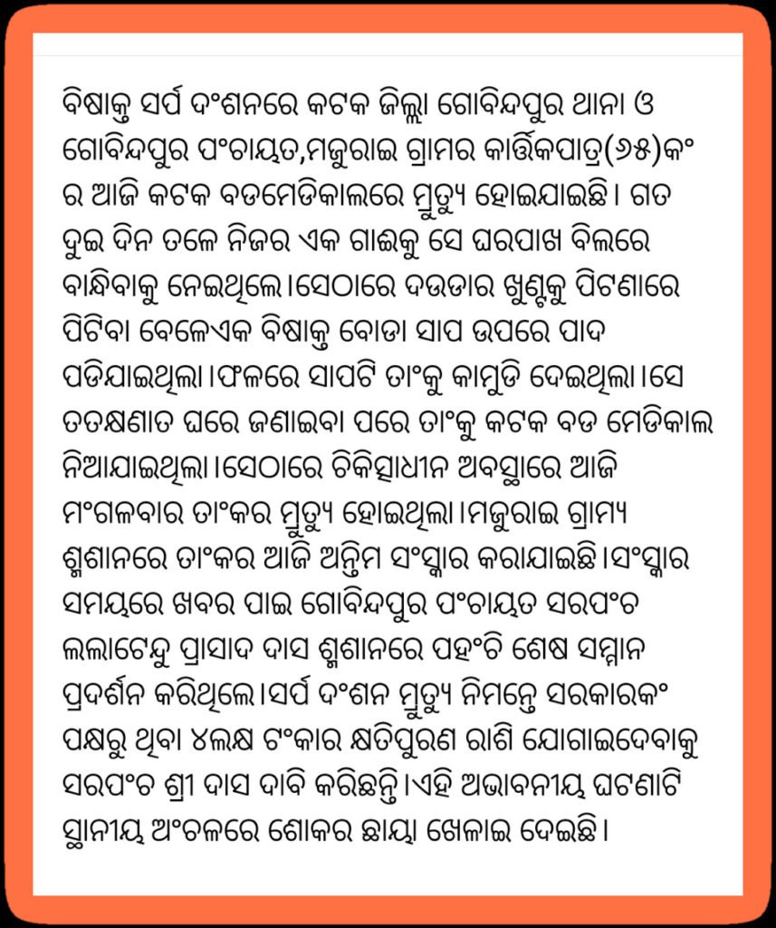କୋର୍ଟପାଇଁ ଆନ୍ଦୋଳନ ତେଜି ପାରେ!ବାଜିମାତ କରିବେ ବିରୋଧୀ,ହରଡ ଘଣାରେ ପଡ଼ିବେ ସରକାର!! Spread the loveSpread the loveଲୋକଙ୍କ ଦ୍ଵାର ଦେଶରେ ନ୍ୟାୟ ପହଞ୍ଚିବାକୁ ମଞ୍ଜୁର ହୋଇଥିଲା ୭୪ଟି […] June 27, 2025June 27, 2025satyanusandhanaLeave a Comment on କୋର୍ଟପାଇଁ ଆନ୍ଦୋଳନ ତେଜି ପାରେ!ବାଜିମାତ କରିବେ ବିରୋଧୀ,ହରଡ ଘଣାରେ ପଡ଼ିବେ ସରକାର!! କେମିତି ଚାଲିଛି ଆମ ରାଜ୍ୟ ସ୍ୱାସ୍ଥ୍ୟ ସେବା?? Spread the loveSpread the loveଓଡ଼ିଶା ଲାଗି ଗର୍ବ,ଗୌରବର ଦିନ। ପ୍ରଧାନମନ୍ତ୍ରୀ ଶ୍ରୀ ନରେନ୍ଦ୍ର ମୋଦୀଙ୍କ […] June 20, 2025June 20, 2025satyanusandhanaLeave a Comment on କେମିତି ଚାଲିଛି ଆମ ରାଜ୍ୟ ସ୍ୱାସ୍ଥ୍ୟ ସେବା?? ଆଦିବାସୀ ନା ବାଳିକାକୁ ଅସଦାଚରଣ:ଅଭିଯୁକ୍ତ ଥାନାରେ ଅଟକ Spread the loveSpread the loveବଢୁଛି ଅପରାଧ : ଏକା ଦିନକେ ଦୁଇ ଘଟଣା (୧)ଆଦିବାସୀ […] January 31, 2025January 31, 2025satyanusandhanaLeave a Comment on ଆଦିବାସୀ ନା ବାଳିକାକୁ ଅସଦାଚରଣ:ଅଭିଯୁକ୍ତ ଥାନାରେ ଅଟକ ୪୦ ବର୍ଷ ପରେ ବ୍ଲକପୁନର୍ଗଠନ… ଭୌଗୋଳିକ ସ୍ଥିତି ବିଚାରକୁ ଅଗ୍ରାଧିକାର ଦେବା ଜରୁରୀ Spread the loveSpread the loveନଦୀ,ନାଳ,ପାହାଡ, ପର୍ବତଘେରା ଅଞ୍ଚଳକୁ ଯେତେ ସେତୁ ହେଲେ ବି ଅଗମ୍ୟ…. […] December 30, 2024February 11, 2025satyanusandhanaLeave a Comment on ୪୦ ବର୍ଷ ପରେ ବ୍ଲକପୁନର୍ଗଠନ… ଭୌଗୋଳିକ ସ୍ଥିତି ବିଚାରକୁ ଅଗ୍ରାଧିକାର ଦେବା ଜରୁରୀ