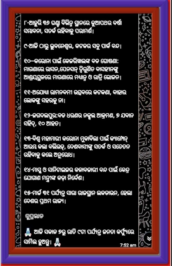 କୋର୍ଟପାଇଁ ଆନ୍ଦୋଳନ ତେଜି ପାରେ!ବାଜିମାତ କରିବେ ବିରୋଧୀ,ହରଡ ଘଣାରେ ପଡ଼ିବେ ସରକାର!! Spread the loveSpread the loveଲୋକଙ୍କ ଦ୍ଵାର ଦେଶରେ ନ୍ୟାୟ ପହଞ୍ଚିବାକୁ ମଞ୍ଜୁର ହୋଇଥିଲା ୭୪ଟି […] June 27, 2025June 27, 2025satyanusandhanaLeave a Comment on କୋର୍ଟପାଇଁ ଆନ୍ଦୋଳନ ତେଜି ପାରେ!ବାଜିମାତ କରିବେ ବିରୋଧୀ,ହରଡ ଘଣାରେ ପଡ଼ିବେ ସରକାର!! କେମିତି ଚାଲିଛି ଆମ ରାଜ୍ୟ ସ୍ୱାସ୍ଥ୍ୟ ସେବା?? Spread the loveSpread the loveଓଡ଼ିଶା ଲାଗି ଗର୍ବ,ଗୌରବର ଦିନ। ପ୍ରଧାନମନ୍ତ୍ରୀ ଶ୍ରୀ ନରେନ୍ଦ୍ର ମୋଦୀଙ୍କ […] June 20, 2025June 20, 2025satyanusandhanaLeave a Comment on କେମିତି ଚାଲିଛି ଆମ ରାଜ୍ୟ ସ୍ୱାସ୍ଥ୍ୟ ସେବା?? ଆଦିବାସୀ ନା ବାଳିକାକୁ ଅସଦାଚରଣ:ଅଭିଯୁକ୍ତ ଥାନାରେ ଅଟକ Spread the loveSpread the loveବଢୁଛି ଅପରାଧ : ଏକା ଦିନକେ ଦୁଇ ଘଟଣା (୧)ଆଦିବାସୀ […] January 31, 2025January 31, 2025satyanusandhanaLeave a Comment on ଆଦିବାସୀ ନା ବାଳିକାକୁ ଅସଦାଚରଣ:ଅଭିଯୁକ୍ତ ଥାନାରେ ଅଟକ ୪୦ ବର୍ଷ ପରେ ବ୍ଲକପୁନର୍ଗଠନ… ଭୌଗୋଳିକ ସ୍ଥିତି ବିଚାରକୁ ଅଗ୍ରାଧିକାର ଦେବା ଜରୁରୀ Spread the loveSpread the loveନଦୀ,ନାଳ,ପାହାଡ, ପର୍ବତଘେରା ଅଞ୍ଚଳକୁ ଯେତେ ସେତୁ ହେଲେ ବି ଅଗମ୍ୟ…. […] December 30, 2024February 11, 2025satyanusandhanaLeave a Comment on ୪୦ ବର୍ଷ ପରେ ବ୍ଲକପୁନର୍ଗଠନ… ଭୌଗୋଳିକ ସ୍ଥିତି ବିଚାରକୁ ଅଗ୍ରାଧିକାର ଦେବା ଜରୁରୀ