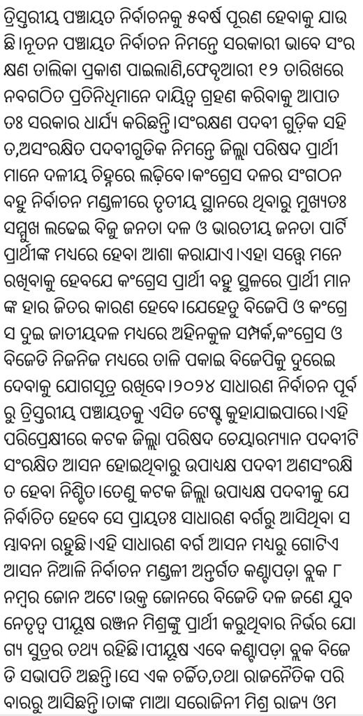 ନିଆଳି ବିଧାନସଭାଆସନ: ବିଜେପି ପ୍ରାର୍ଥୀଙ୍କର ଅଞ୍ଚଳ ସମସ୍ୟାକୁ ବାଦ୍ ଦେଇ ଜାତୀୟ ଇସୁରେ ମିଶନ ପୂରଣ ହେବ କେମିତି?କମୁଛି ନିଜ ଘରର ସମର୍ଥନ?(ଭାଗ-୩)