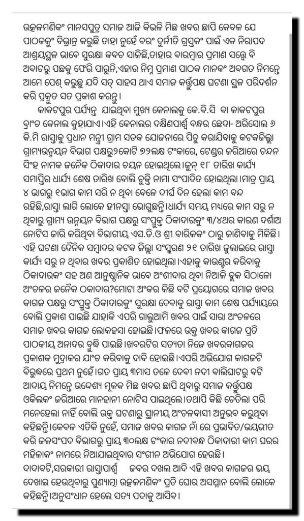 ଦୁର୍ନିତି ମିଛ ଖବର ଛାପି’ସମାଜ’ ଖବର କାଗଜ ଠିକାଦାର କଂ ରକ୍ଷାକବଚ ସାଜିଛି! July 23, 2020July 23, 2020satyanusandhanaLeave a Comment on ମିଛ ଖବର ଛାପି’ସମାଜ’ ଖବର କାଗଜ ଠିକାଦାର କଂ ରକ୍ଷାକବଚ ସାଜିଛି! Spread the love ଦୈନିକ ସମ୍ବାଦ ଖବର କାଗଜରେ ପ୍ରକାଶିତ ଖବର
