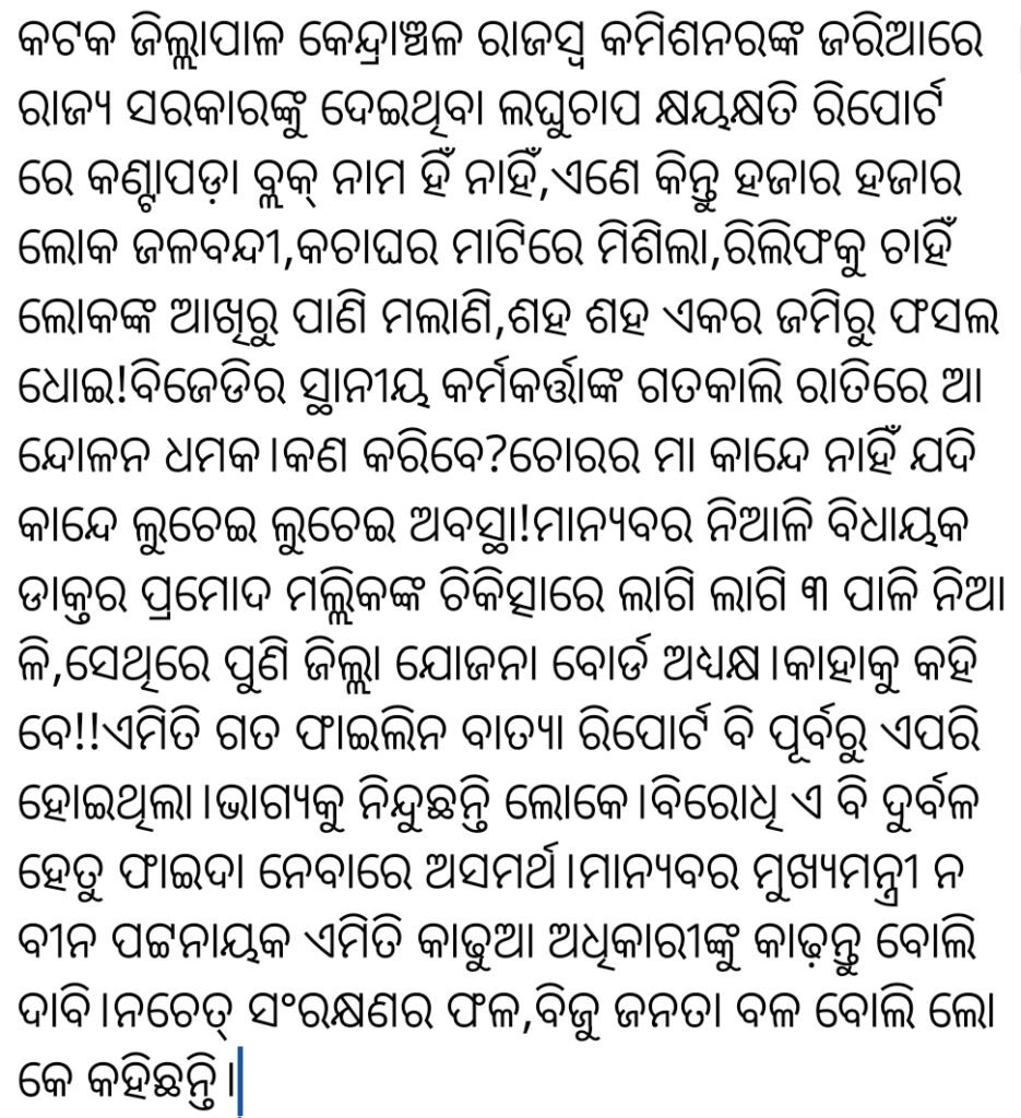 breaking News ଜିଲ୍ଲାଖବର ଦୁର୍ନିତି ରାଜ୍ୟଖବର ଲଘୁଚାପ ରିପୋର୍ଟରେ କଣ୍ଟାପଡ଼ା ବ୍ଲକ ପ୍ରତି ବୈମାତୃକ ମନୋଭାବ?? କଟକଜିଲ୍ଲାପାଳଙ୍କ ଭୂମିକାକୁ ନେଇ ଉଠିଲା ସନ୍ଦେହ!! September 17, 2021September 17, 2021satyanusandhanaLeave a Comment on ଲଘୁଚାପ ରିପୋର୍ଟରେ କଣ୍ଟାପଡ଼ା ବ୍ଲକ ପ୍ରତି ବୈମାତୃକ ମନୋଭାବ?? କଟକଜିଲ୍ଲାପାଳଙ୍କ ଭୂମିକାକୁ ନେଇ ଉଠିଲା ସନ୍ଦେହ!! Spread the love